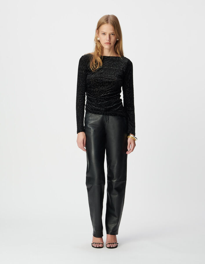 Tee-shirt manches courtes noir lurex maille ajourée Femme