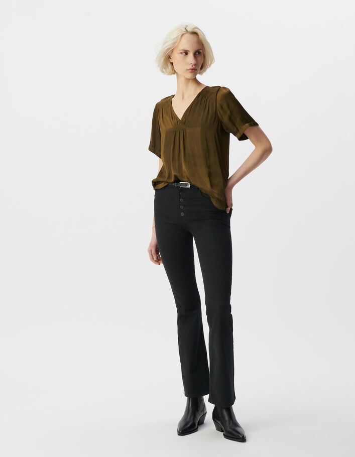 Tee-shirt manches courtes kaki encolure V-bijou Femme