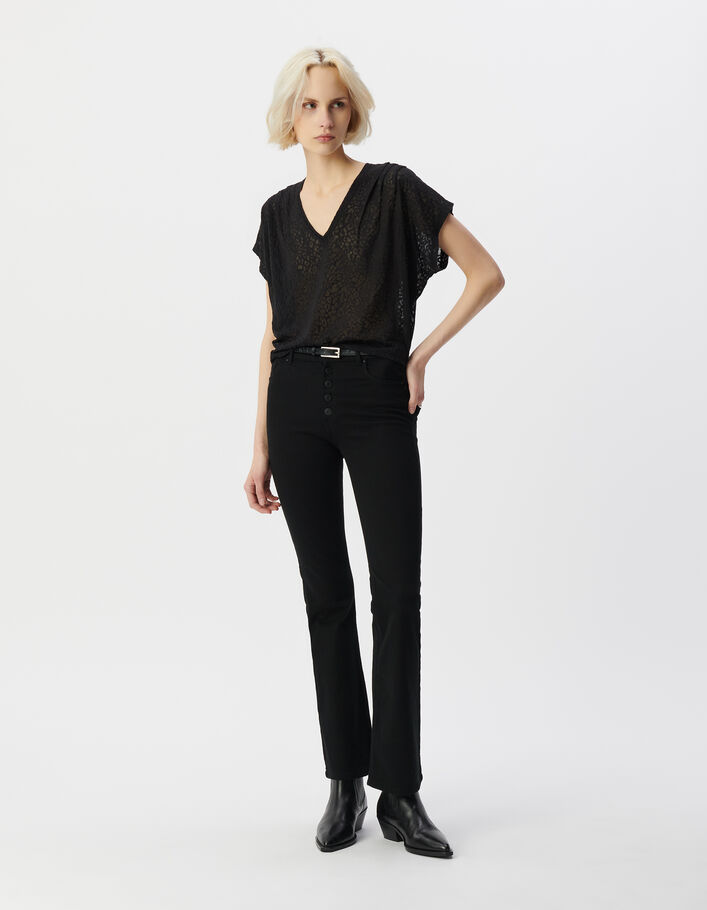 Tee-shirt encolure V noir motif transparent léopard Femme