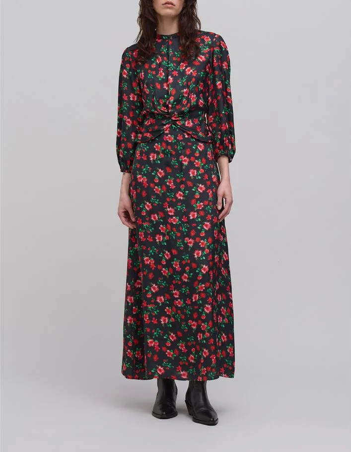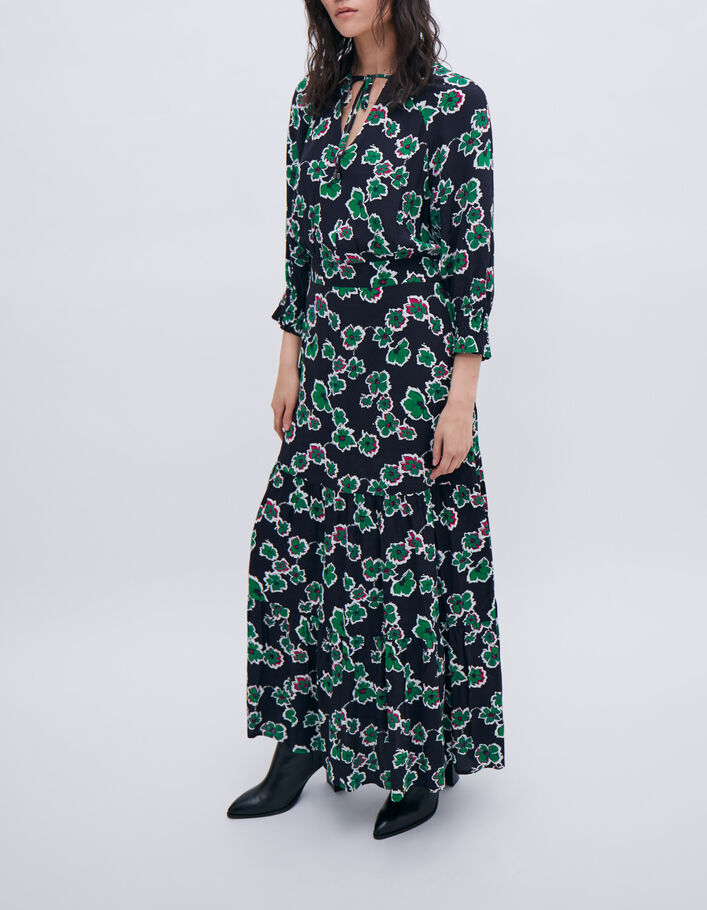 Robe longue noire maxi floral Femme