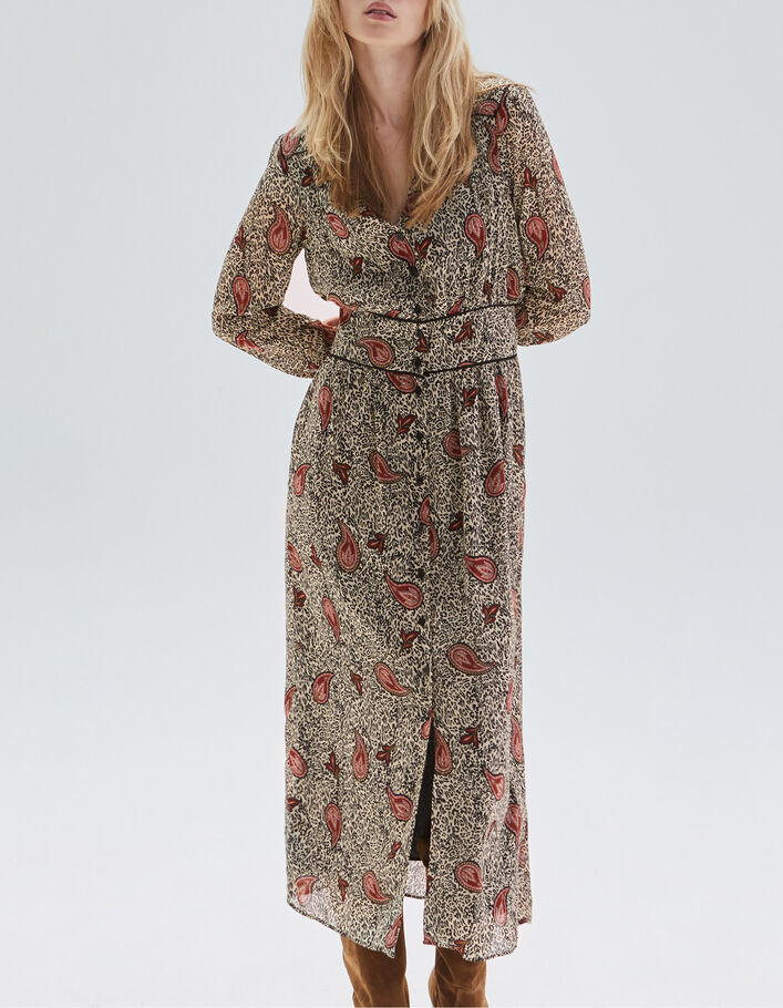 Robe longue écrue recyclée imprimé léo cachemire Femme