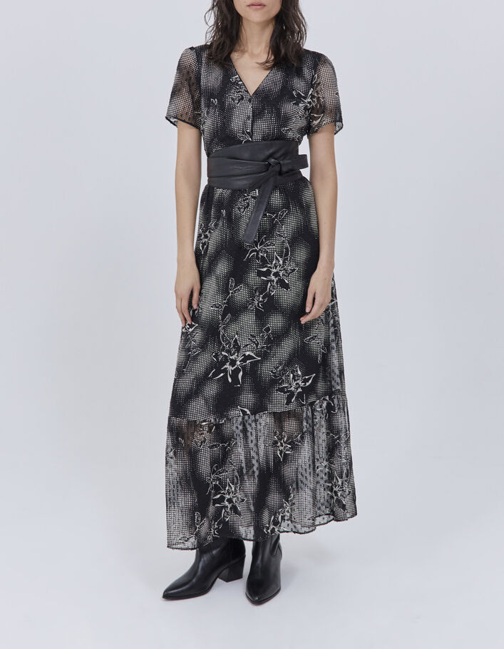 Robe longue noire imprimé dandy flower écru Femme
