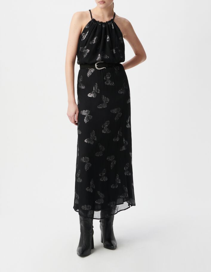 Robe longue noire jacquard lurex papillons Femme