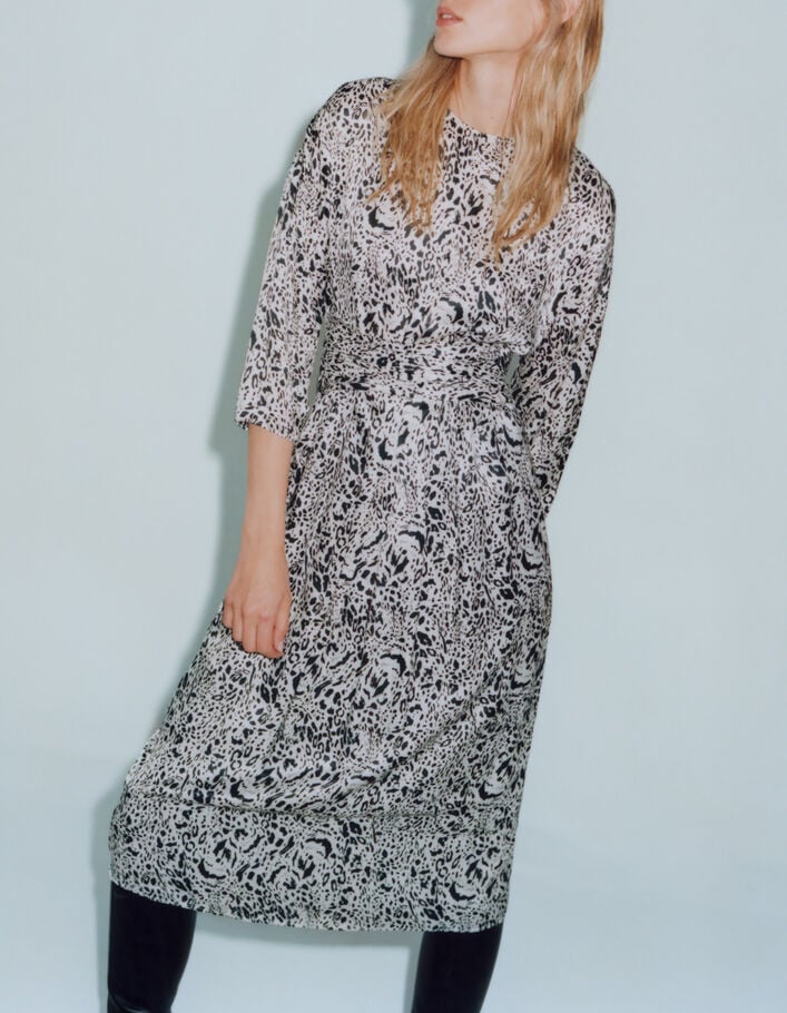 Robe midi blanc cassé imprimé animalier Femme