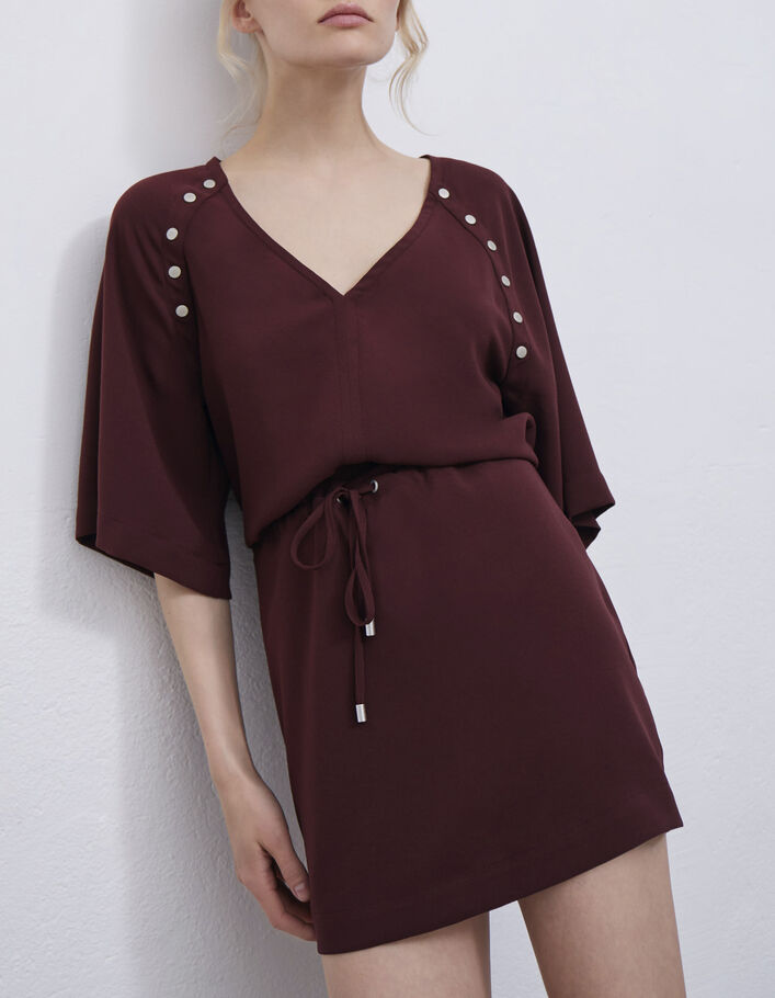 Robe grenat avec décor pressions Femme