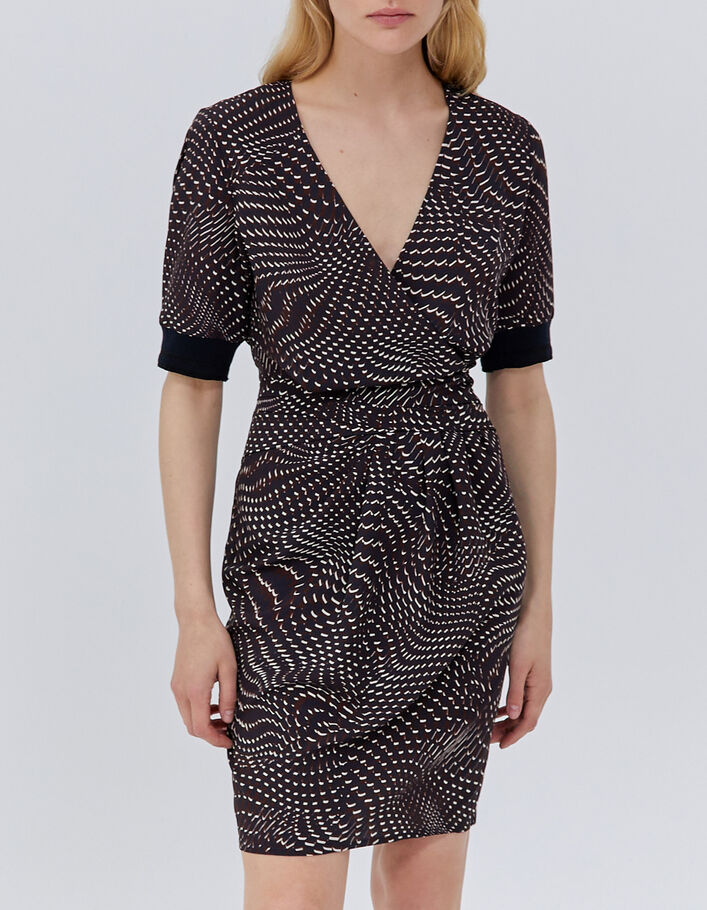 Robe noire à imprimé typo écru Femme