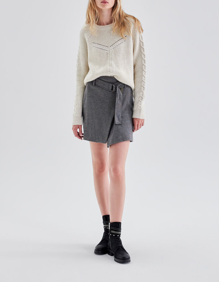 Jupe courte gris faux-uni portfeuille Femme