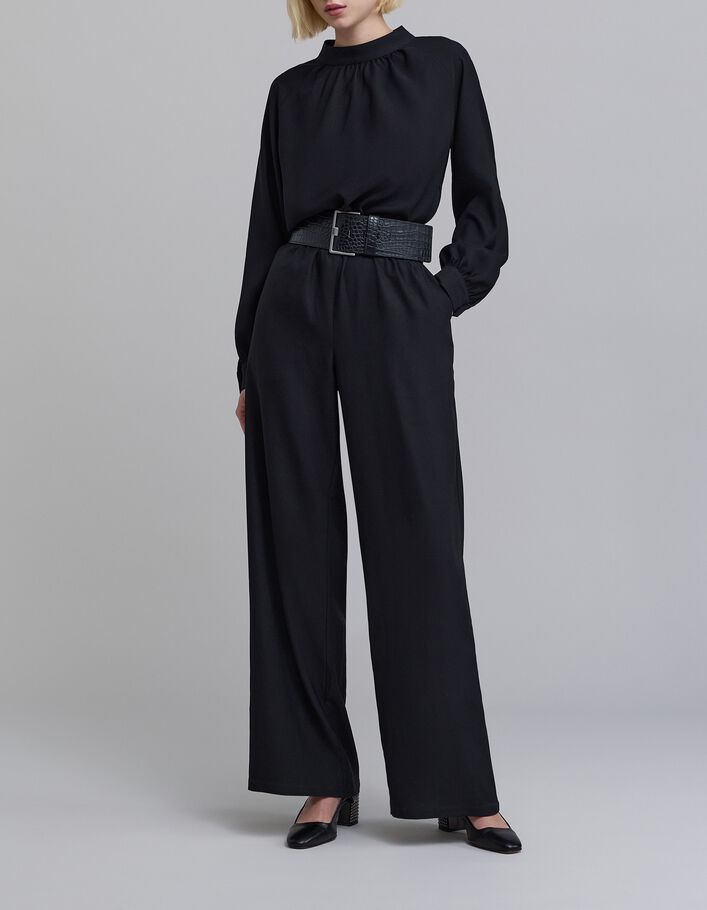 Pantalon fluide noire maxi floral ceinturé Femme