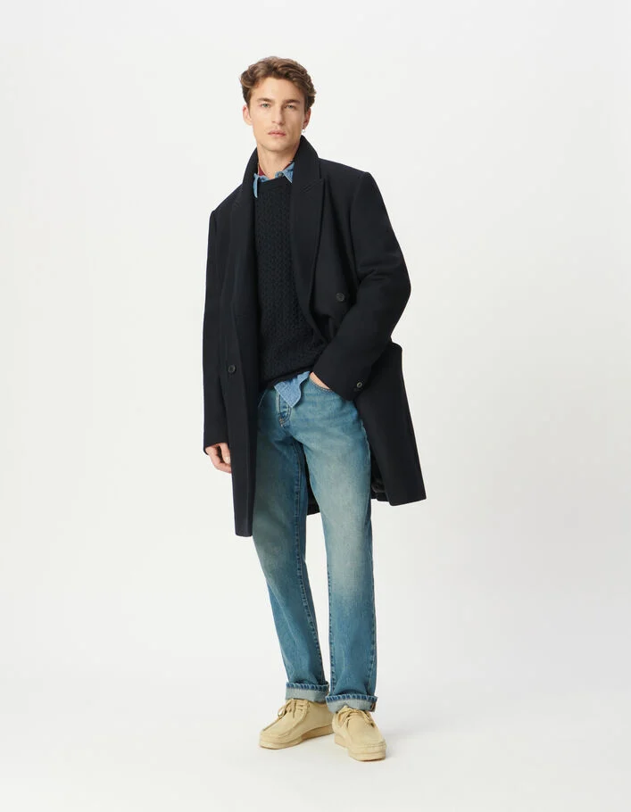 Manteau marine mi-long boutonnage croisé Homme