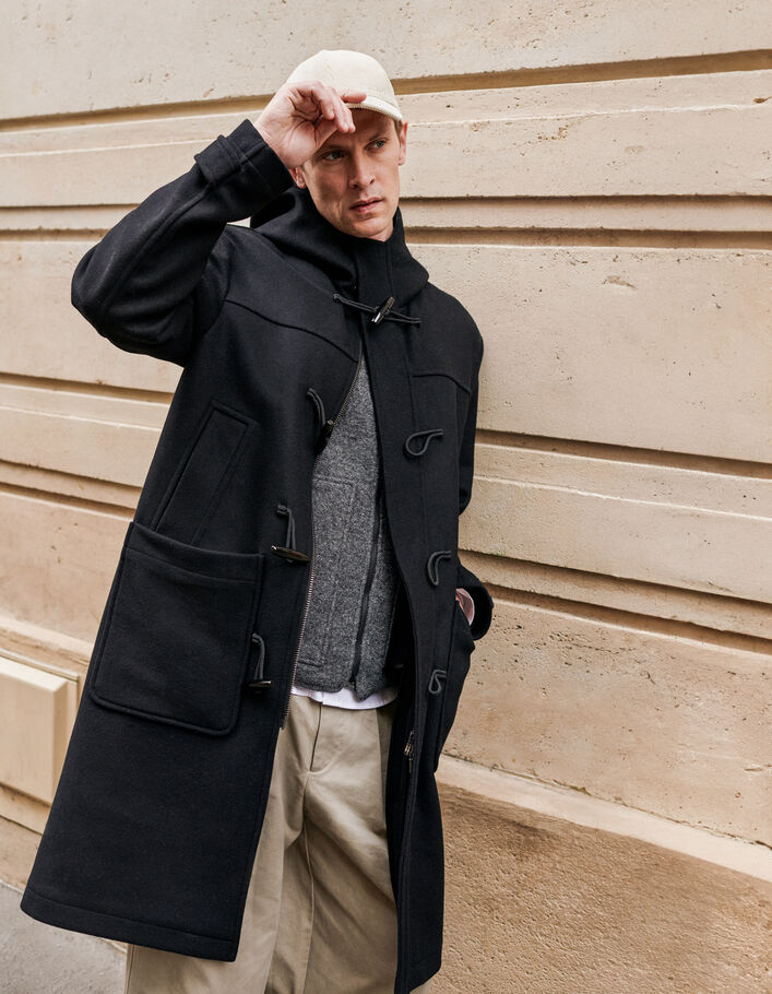 Manteau noir esprit duffle coat drap de laine Homme