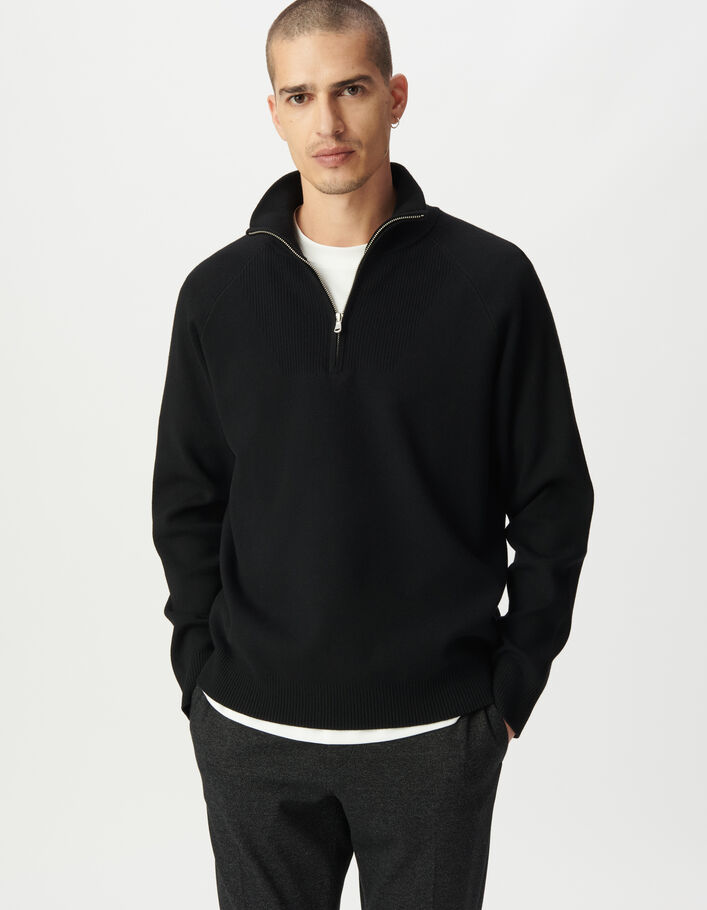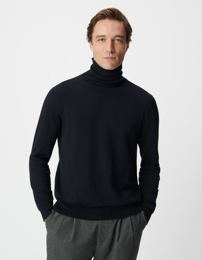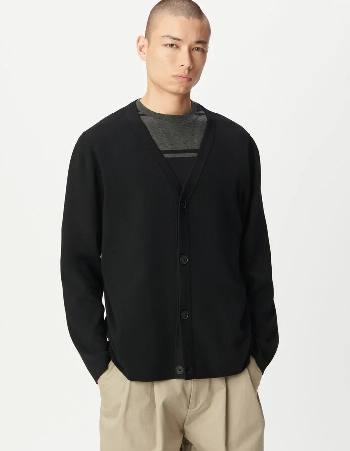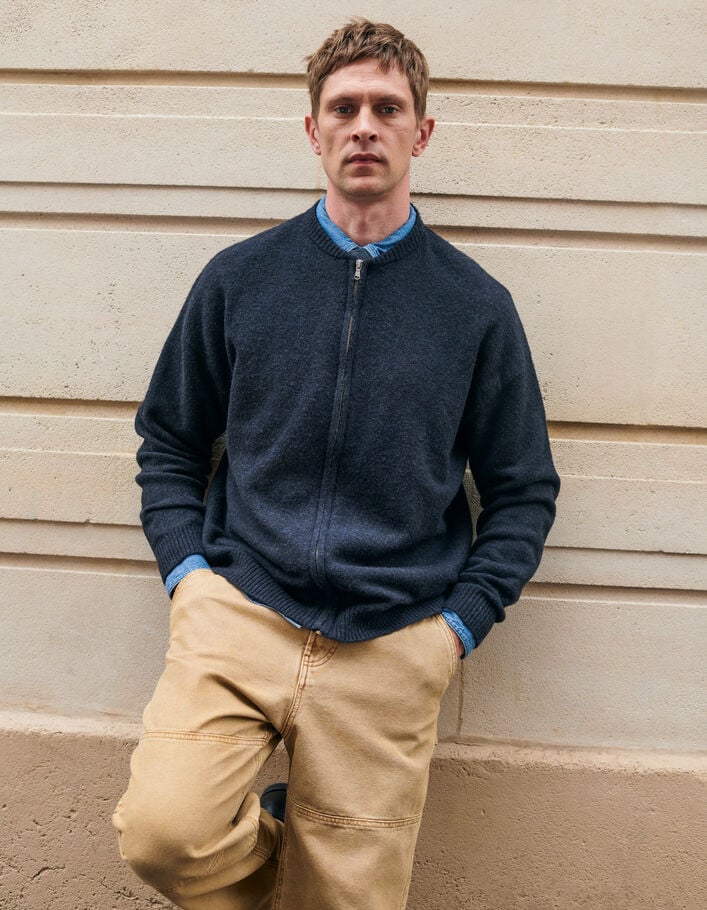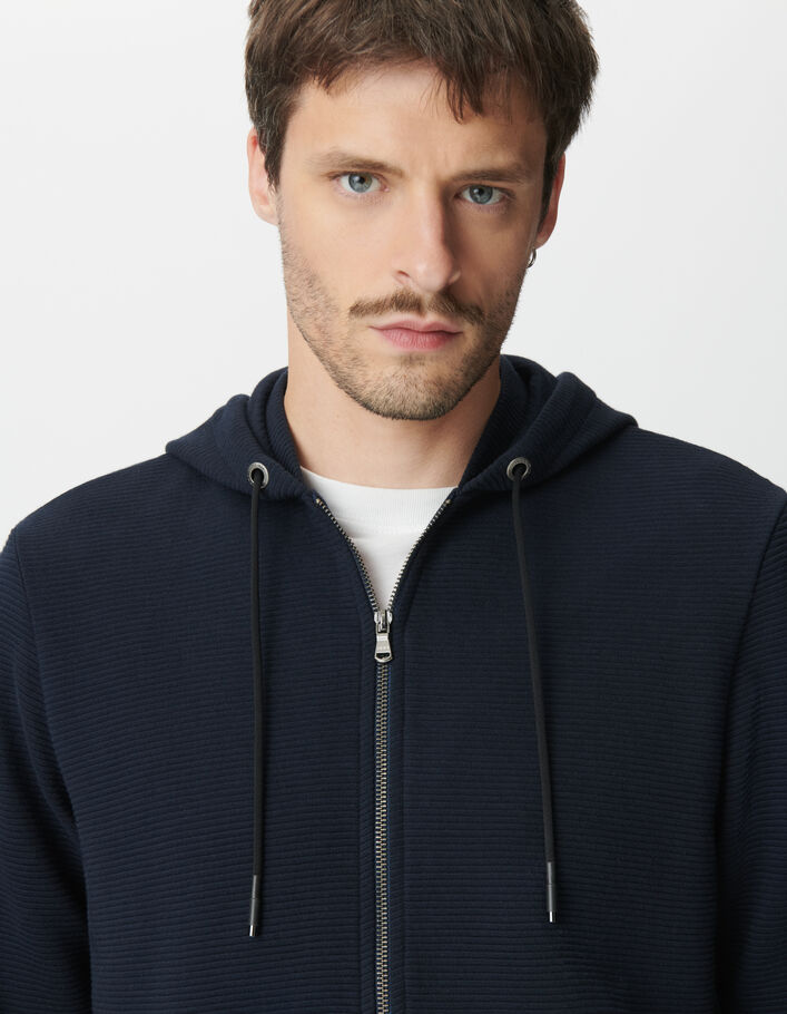 Cardigan marine coton bio maille Ottoman à capuche Homme