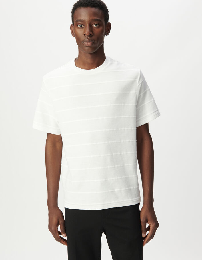 T-shirt manches courtes blanc jacquard rayures Homme