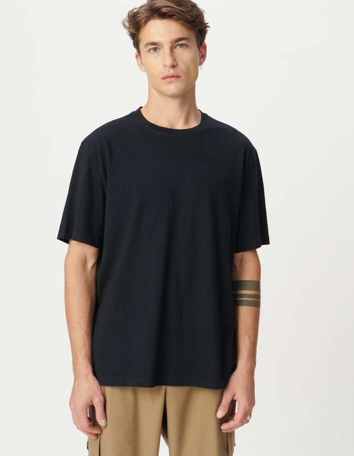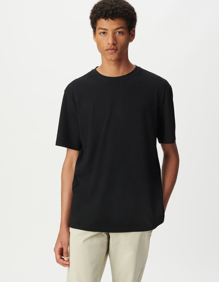 T-shirt noir col rond manches courtes Homme