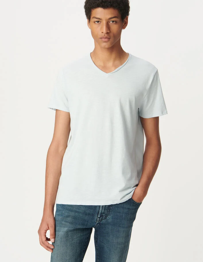 T-shirt L'Essentiel ciel coton bio encolure V Homme