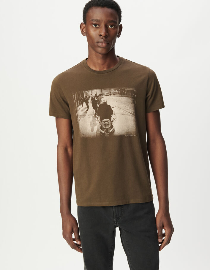 T-shirt manches courtes kaki photo motard Homme