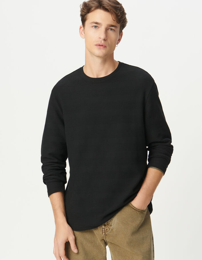 T-shirt manches longues noir rayures relief Homme