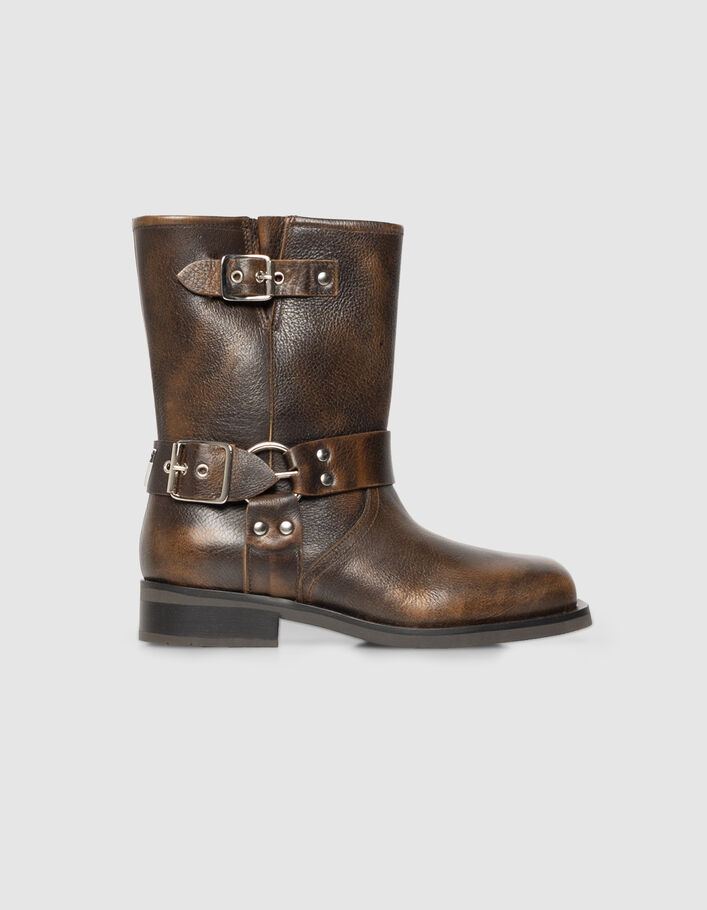 Ballerines bordeaux cuir effet poulain 3 boucles Femme