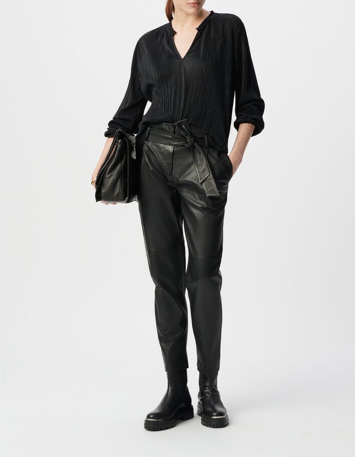 Pantalon noir taille haute en cuir d'agneau femme