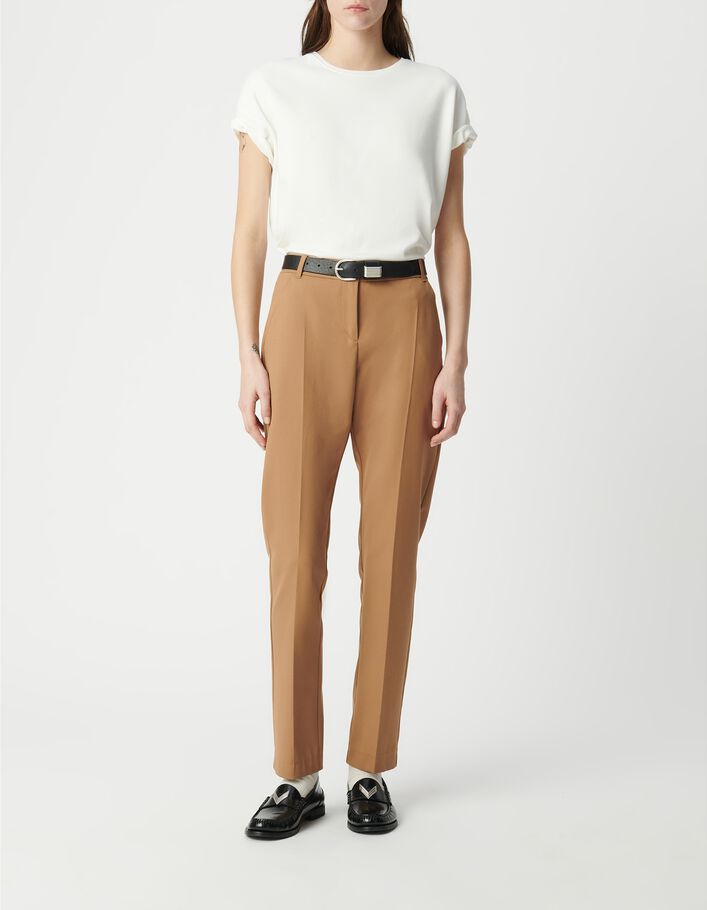 Pantalon droit camel enduit métallisé Femme