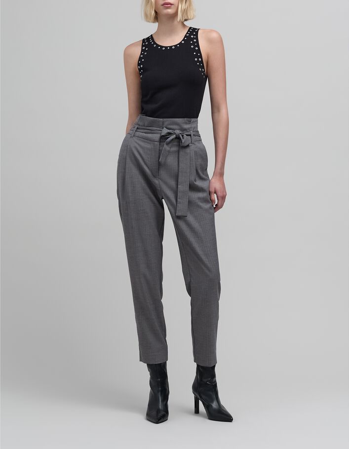 Pantalon taille haute marine ceinturé