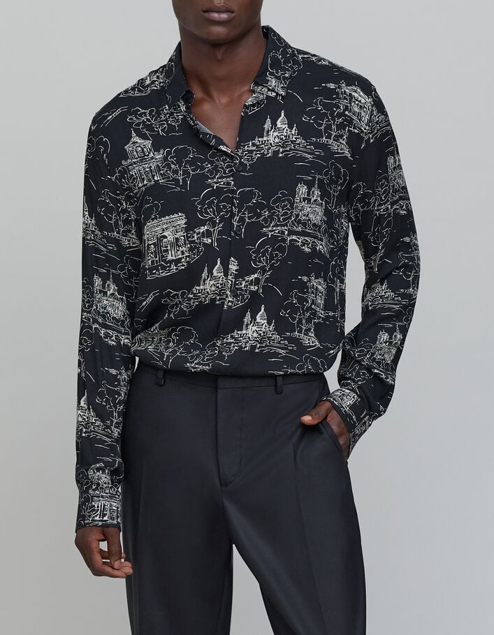 Pure Edition-Chemise SLIM noire toile de Jouy Homme