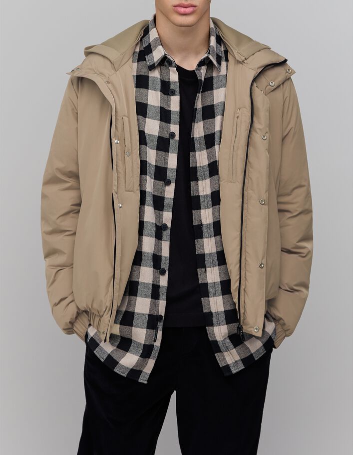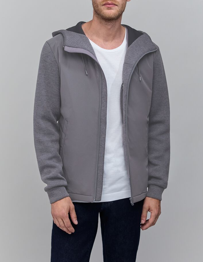 Doudoune grège capuche néoprène amovible Homme