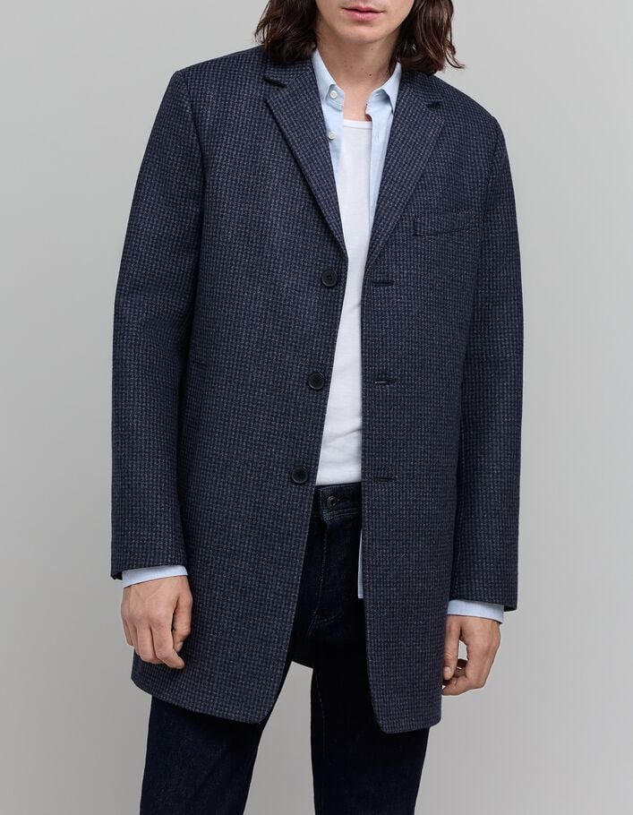 Manteau marine lainage à motif carreaux Homme
