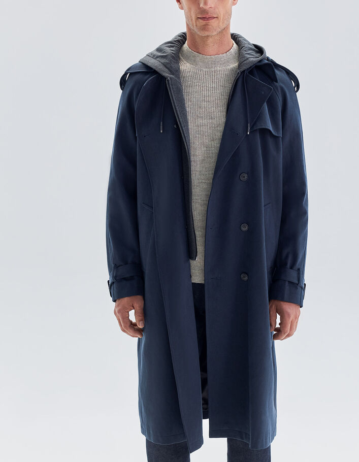 Trench long dark navy parementure molleton gris Homme