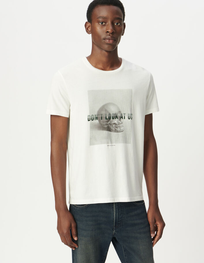 T-shirt blanc visuel crâne et message floqué Homme