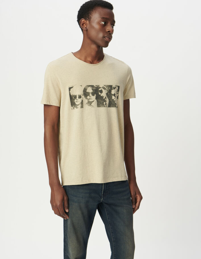 T-shirt beige photo quatre visages Homme