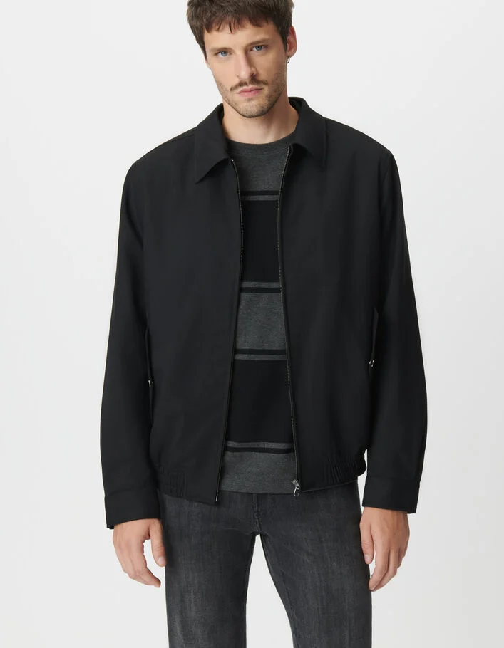 Blouson aviateur noir en cuir sherpa amovible Homme